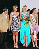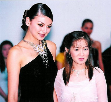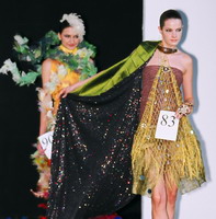 on the right with her awarded "By Nature" worn on the international super models during the exciting competition time of Designer